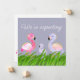 Partagez vos bonnes nouvelles avec cette jolie carte de faire-part de grossesse Flamant rose. Une carte à plat délicieuse à envoyer à votre famille et à vos amis pour leur faire savoir que vous attendez un bébé. Design caractéristiques aquarelle rose et bleu pâle mammy, papa et bébé flamants avec un arrière - plan mauve à motif pâle et texte blanc, Tout le texte peut être modifié pour customiser puis personnaliser avec vos dates d'échéance et message sur le dos. Oh - et beaucoup de félicitations.
