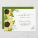 Elégant chic fleurs d'aquarelle rustique nouvelle maison même carte de faire-part émouvante d'amour avec un beau bouquet botanique d'été de tournesols jaunes avec feuillage vert émeraude et sauge et un script de calligraphie verte tendance.