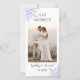 Annoncez votre nouveau statut de mariée après votre mariage privé de décembre, janvier ou février ou l'évènement secret avec le festif Blue Snowflake Winter Wedding Just Married Carte photo. Cette carte d'hivernage vient d'être mariée avec une conception complexe de flocon de neige avec une teinte bleue et un arrière - plan blanc. Disponible sous forme d'invitation imprimée à l'envoi ou en téléchargement numérique pour un partage numériquement en ligne facile.