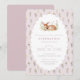Ravissez vos invités avec cette charmante invitation d'anniversaire cottagecore représentant un petit faon reposant parmi les fleurs sauvages. Le fond floral rose doux et le cadre à festons créent un design forestier fantaisiste, parfait pour la célébration de l'anniversaire d'une petite fille ou une première fête d'anniversaire. Cette invitation mélange les vibrations rustiques de la forêt avec l'élégance délicate de cottagecore, ce qui en fait un choix intemporel pour le jour spécial de votre enfant.
