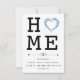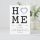 Announce your new location with this elegant and modern change of address card. The design features the word "HOME" with the letter "O" replaced by a beautiful blue floral heart wreath, giving it a warm, welcoming, and slightly rustic floral feel. Perfect for families like Richard, Robert, Romeo & Rachel who want a stylish and memorable new home announcement. Easily customize the new street address, city, and contact phone number.