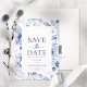 Annoncez votre jour spécial avec style avec cette élégante carte de Faire-part. Caractérisé par une délicate bordure botanique à l'aquarelle bleue sur un fond blanc croquant, ce design allie romance classique et minimalisme moderne. Une façon intemporelle et sophistiquée d'inviter vos invités à célébrer avec vous.
