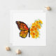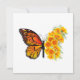 Orange, detailed monarch butterfly with wing decorated with yellow, vibrant California poppy on white background.
