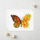 Orange, detailed monarch butterfly with wing decorated with yellow, vibrant California poppy on white background.