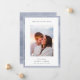 Les cartes de faire-part fiançailles chic et minimaliste comportent une photo verticale ou portrait orientée sur un arrière - plan blanc avec une fine bordure de bande d'aquarelle dans des tons éthérés de bleu poussiéreux. "Forever Starts Here" apparaît en haut dans les lettres modernes, avec vos faire-part, noms et détails supplémentaires en bas.