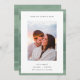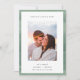 Les cartes de faire-part minimalistes chic comportent une photo verticale ou à orientation portrait sur un arrière - plan blanc avec une fine bordure de bande d'aquarelle dans des tons éthérés de vert jade. "Forever Starts Here" apparaît en haut dans les lettres modernes, avec vos faire-part, noms et détails supplémentaires en bas.