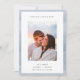 Les cartes de faire-part minimalistes chic comportent une photo verticale ou à orientation portrait sur un arrière - plan blanc avec une fine bordure de bande d'aquarelle dans des tons bleus éthérés. "Forever Starts Here" apparaît en haut dans les lettres modernes, avec vos faire-part, noms et détails supplémentaires en bas.