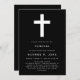Famille Invitation et amis pour honorer la mémoire de votre être aimé avec ce faire-part funéraire moderne noir et blanc. Le design comprend une grande croix blanche et des polices modernes. Customisez avec vos propres détails. Parfait pour les funérailles d'un homme, le service commémoratif ou la célébration de la vie. Des éléments correspondants sont disponibles.