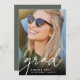 Faire-part simple et moderne de graduation photo caractéristiques "grad" le long du bas en décontracté écriture manuscrite, avec le nom et l'école de votre diplômé, et l'année de graduation en dessous. Idéal pour obtenir des diplômes de niveau secondaire, collégial ou avancé. Ajoutez un message personnel à l'arrière, ainsi qu'une photo supplémentaire.