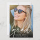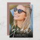 Faire-part simple et moderne de graduation photo caractéristiques "grad" le long du bas en décontracté écriture manuscrite, avec le nom et l'école de votre diplômé, et l'année de graduation en dessous. Idéal pour obtenir des diplômes de niveau secondaire, collégial ou avancé. Ajoutez un message personnel à l'arrière, ainsi qu'une photo supplémentaire.