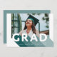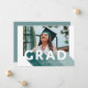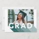 Cette faire-part de graduation personnalisée de 2 photos avec le mot GRAD en lettres 3d avec des ombres dans les tons verts a une ambiance rétro. Espace pour le texte supplémentaire et une photo à l'arrière.