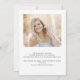Script simple et moderne avec deux photos Faire-part de graduation. Doté d'une photo pleine dimension sur le devant avec une superposition de texte blanc et d'une photo sur le côté arrière avec des détails optionnels.