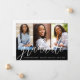 Une carte simple et moderne pour faire-part un diplôme. L'avant affiche GRADUATE dans une police de script blanc. Personnalisez avec un collage de trois photos et le nom des diplômés, l'année de diplôme et l'école. Le verso offre la possibilité de personnaliser avec votre propre message personnel ou vous pouvez supprimer tout le texte pour laisser vide.