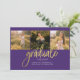 Graduation 4 Photo Collage Script Purple Gold Grad Faire-part pour la classe de 2022. Customisez facilement en changeant le texte et en remplaçant les photos par les vôtres. Une façon moderne et moderne d'annoncer votre diplôme cette année!