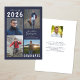 Faire-part de graduation en bleu et blanc de la marine avec 5 photos (4 à l'avant et 1 à l'arrière) et le nom du diplômé en écriture manuscrite. L'année de classe peut être modifiée ainsi que le style de police de texte, la couleur, la taille et le placement. Le verso comporte un champ de texte personnalisé facultatif pour inclure des informations supplémentaires sur le diplômé (supprimer l'exemple de texte dans ce champ si non désiré). ASSISTANCE : Pour obtenir de l'aide sur la modification ou la personnalisation du design, le changement de couleur, le redimensionnement ou le transfert du design vers un autre produit, contactez le concepteur AVANT de commander par Zazzle Conversation ou par courriel makeitaboutyoustore@gmail.com.