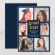 Faire-part Graduation 6 Photo Collage Or Blanc Script Bleu