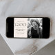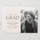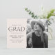 Célébrez le jalon excitant de votre diplômé avec ces annonces uniques de diplôme de photographie! Le design comporte des "félicitations à notre grade" en lettres modernes noires avec un arrière - plan couleur crème avec un bord déchiré en bordure de la photo senior du diplômé. Personnalisez le faire-part en ajoutant le nom du diplômé, le nom de l'école et l'année de fin d'études. La carte inverse pour afficher un arrière - plan crème solide.
