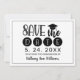 Annoncez votre diplôme à votre famille et amis avec cet élégant enregistrer la carte à plat date. Ce modèle design présente un design typographique moderne en noir sur blanc accentué par une casquette de graduation. Sur le recto de la carte postale, on peut lire "Enregistrer la date pour assister à la remise des diplômes" dans un script moderne avec la date et le nom que vous pouvez personnaliser. Le dos de la carte postale contient plus de détails sur votre diplôme, y compris une invitation à la fête pour vous de customiser. Félicitations pour votre diplôme ! Conçu par l'artiste ©Susan Coffey.