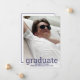 Une simple carte de faire-part de graduation en maquette blanche avec votre photo et polices mélangées modernes en bleu marine, aussi unique que votre diplômé. Le dégradé doux mélangé sur la partie inférieure de votre photo permet au texte bleu marine foncé de s'afficher. Ces élégantes cartes plates s'inversent en bleu marine texte sur blanc avec une bordure classique en bleu assorti autour du bord de la carte. Ajoutez vos photos et détails de fin d'études pour une invitation personnalisée unique à un faire-part ou une grande fête qui est parfaite pour le collège universitaire, le lycée ou les diplômés de n'importe quel âge.