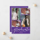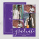Add your favorite four photos to the front of these graduation party invitations featuring graduate and class of in chic lettering on a purple school color background. Click on Customize further link to change to any color using our design tools. MORE designs and colors done in our store including invitations, save the date cards and postcards.