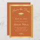 Envoyez à votre famille et à vos amis une élégante remise de diplômes, enregistrez l'annonce de la date mettant en vedette un arrière - plan orange avec de la calligraphie de fuax or et un casquette de couleur or bordé d'un cadre doré. Personnalisez avec vos détails de graduation. Conçu par Susan Coffey.