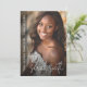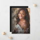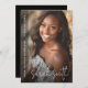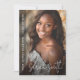 Carte faire-part photo avec votre photo avec le nom du diplômé dans une police de caractères moderne en écriture blanche et le nom et l'année aligné à gauche sur une couverture sombre. Photo supplémentaire et message personnalisé au dos.