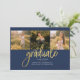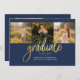Faire-part Graduation Photos Script Marine Blue Gold Foil