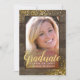 Annoncez votre graduation 2023 en style avec cette carte de diplômé en glamour rustique personnalisée. Ce design est composé d'un arrière - plan de bois et de parties scintillant en faux or avec votre photo au centre. Les mots lisent "Graduate, Class of 20xx" avec votre nom. Le dos de la carte a faux bois et parties scintillant d'or avec une tache pour plus de détails sur la graduation pour vous de personnaliser. Conçu par un artiste de renommée mondiale ©Tim Coffey. Photographie © Storytree Studios, Stanford, CA.