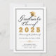 Annoncez votre graduation en style avec cette élégante carte de faire-part personnalisée. Ce design typographique présente les mots Classe de 20XX avec votre nom, l'école et la date pour personnaliser en or et noir accentué par un faux casquette diplômé en or et encadré en noir. Le dos de la carte a une photo personnalisée pour vous de changer à votre propre. Conçu par Susan Coffey.