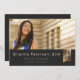 Cette carte de faire-part de 7" x 5" avec graduation à plat est dotée d'une fausse feuille d'or avec l'année de graduation, d'un espace réservé pour votre photo préférée, l'une à l'avant et l'autre à l'arrière avec un arrière - plan noir.