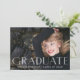 2 Cartes modernes et audacieuses de graduation photo, avec des éléments de design de blanc transparent, de style de mode moderne avec typographie minimaliste. La photo du diplômé à l'avant de la carte met en évidence toute la surface avec une deuxième photo à l'arrière. Le dos de la carte offre également des espaces de texte personnalisés pour des informations sur votre graduation et votre futur voyage. Idéal pour les personnes âgées du secondaire, du collège et de l'université.