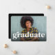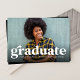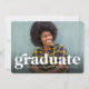 Avec un audacieux diplômé rétro en police de caractères, ce carte photo unique est le moyen parfait pour annoncer votre grade à votre famille et à vos amis. Le style vintage est subtil et simple pour ce faire-part de graduation et parfaitement sur la tendance pour cette classe de graduation. Le dos de cette carte est noir avec une texture tachetée. Vous pouvez modifier la couleur en cliquant sur "customiser plus loin".