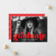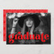 Annonces de fin d'études élégantes avec la photo horizontale du diplômé avec "diplômé" en caractères rouges gras. Personnalisez le faire-part de remise de diplômes en photo en ajoutant le nom du diplômé, l'année de remise de diplômes et l'école. La faire-part s'inverse pour afficher un motif d'arc rétro rouge et blanc.