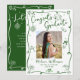 Be proud, rejoice and showcase this milestone of your favorite grad! Send out this quirky, whimsical, simple, modern, personalized photo collage announcement card for an event to remember. Fun, hunter green handwritten script typography and hand drawn graduation icon sketch doodles, along with your custom photo, overlay a minimal white background. On the back, white hand drawn doodles and your personalized copy overlay hunter green. Personalize the custom text with your grad’s photo, name, school and class year on the front. Add your personal note, next school she’s attending, party info, etc. on the back. Matching invites, thank you cards, cap toppers, napkins, plates and other graduation goodies are also available in this trendy and stylish collection. Guaranteed to add stylish fun to their special occasion!