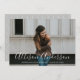 Élégant faire-part de graduation avec la photo horizontale du diplômé et le nom du diplômé dans une superposition de script de calligraphie blanche. Personnalisez le faire-part de graduation photo en ajoutant le nom de l'école et l'année de graduation. Le faire-part s'inverse pour afficher un motif de treillis blanc et un arrière - plan gris clair ou la couleur de votre choix.