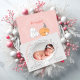 © Socialite Designs Inc. & LICENSORS. Annoncez la naissance de votre petite fille avec ce faire-part de naissance animal boisé simple mais élégant. Les couleurs sont roses et grises. Remplacez la photo modèle par votre propre image. Fait un beau carte photo de gardien pour la famille et les amis.