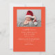 Elégante et moderne carte de thème de Noël avec un texte typographique qui dit "petits orteils grande joie". C'est une carte faire-part de naissance pour les saisons de vacances ! Ajoutez vos photos, vos statistiques de naissance et un message ! L'arrière - plan est rouge.