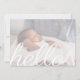 Annoncez et bienvenue votre nouveau bébé dans le monde avec notre simple et moderne carte faire-part de naissance photo bonjour bébé. La conception comprend une seule mise en page complète de la photo pour afficher la photo de votre nouveau bébé. Un recouvert blanc clair est placé sur la photo avec le recouvert "bonjour" dans un simple script blanc. L'envers est constitué d'un simple faux coeur doré avec le nom du bébé, la date de naissance, les statistiques de naissance et le message personnalisé affiché avec une bordure simple.