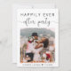 Élégant aménagement ou petit faire-part mariage et invitation à la réception. Le devant présente votre photo de jour de mariage et "Happily Ever After Party" dans un mélange de typographie simple et d'un joli script avec des swashes. Sous votre photo, vous pouvez ajouter vos prénoms et votre date de mariage. À l'envers, vous pouvez personnaliser votre message de manière plus détaillée et ajouter les détails de l'invitation de réception ou de la partie et vos noms dans un script de type signature.