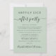 Faire-part vert sage chic pour votre salon ou mariage privé avec une réception après mariage ou une invitation de fête. Sur le devant, "Happily Ever After Party" est écrit en simple typographie et un script tendance avec des swashes, et vous pouvez personnaliser votre faire-part de mariage et d'invitation et ajouter vos noms dans un script signature. Au verso, vous trouverez votre photo de mariage, vos prénoms et votre date de mariage.