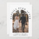 Élégant aménagement ou faire-part de mariage privé et invitation à la réception. Le devant présente votre photo de jour de mariage dans un cadre voûté et "Happily Ever After" en typographie élégante. Ajoutez vos prénoms, votre date mariage et votre emplacement. Au contraire, personnalisez votre faire-part mariage et vos détails de réception et ajoutez vos noms dans un script signature.