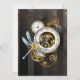 Cadran d'antiquités avec or et lances en laiton, décoré de libellules mécaniques sur arrière - plan brun rayé. Steampunk.