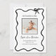 Cette faire-part de naissance mignonne, noire et blanche, chic et élégante, présente un cadre noir dessiné à la main, un cadre illustré ondulé avec un arc autour de la photo de votre nouveau-né, et un script écrit à la main élégant sur un arrière - plan blanc simple. Parfait pour un nouveau-né.