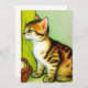 Carte avec un chat tabby facile ! Ce joli tabby pose à côté d'un panier et de fleurs. Un cadeau parfait pour les amoureux de les chats et les amateurs d'art victorien !