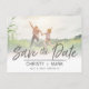 Choisissez la meilleure photo de votre séance de prise de vue de fiançailles ou votre photo préférée des deux pour cette parfaite carte de sauvegarde de la date. Les mots « sauvegarder la date » sont manuscrits pour donner une touche personnelle à la carte postale. Modifiez cette carte de sauvegarde de date de mariage avec vos informations et personnalisez-la davantage pour les options de police et de couleur de police.
