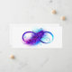 Infinity symbole with a beautiful feather painted in purple and blue bright colors on white background