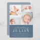 Les annonces de naissance élégantes comportent quatre photos de nouveau-nés disposées dans une grille de montage sur un arrière - plan bleu poussiéreux. "Introduce [name]" apparaît sous le script de calligraphie chic et le lettrage de bloc classique. Personnalisez avec le nom complet du bébé, les statistiques de naissance et une signature de famille en bas. Un design simple et propre et neutre pour annoncer l'arrivée de votre petit.
