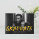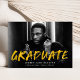 Annoncez votre remise de diplôme avec nos cartons d'invitation modernes à éclaboussures de peinture. Le design présente la photo horizontale du diplômé avec « Diplômé » en lettres jaunes et des éclaboussures de peinture blanches. Personnalisez le recto des cartons de remise de diplôme créatifs en ajoutant le nom du diplômé, le nom de l'école et l'année de remise de diplôme. Le verso de l'annonce présente un fond jaune avec des éclaboussures de peinture blanches. Le design est parfait pour les diplômés du lycée et de l'université.