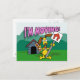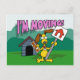Un chiot jaune faisant savoir au monde qu'il a une nouvelle maison et qu'il va bientôt déménager.