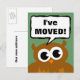 Je déplace la nouvelle carte postale d'adresse | dessin de chouette brune. Message personnalisé pour le déplacement vers une nouvelle maison ou une nouvelle zone. Changement d'adresse à l'arrière.